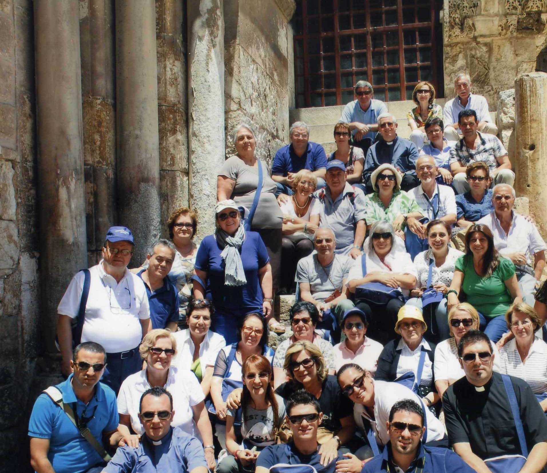 pellegrinaggio parrocchiale in Terra Santa - luglio 2011 - foto di gruppo accanto alla basilica del Santo Sepolcro.