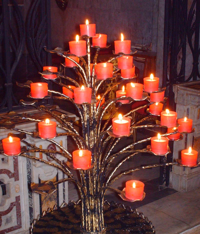 luned́ e marted́ santo: i fedeli si avvicendano davanti alla cappella del Santissimo per l'adorazione eucaristica nei giorni delle 'Quarantore'. Davanti alla cappella ardono i lumini, segno della fede e della preghiera di chi li ha accesi