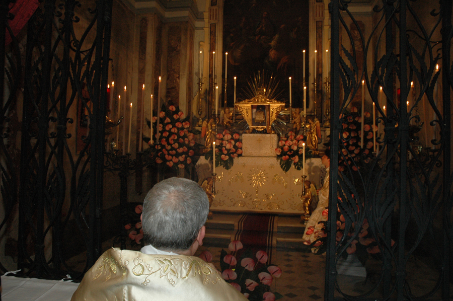 Giovedì Santo, il Santissimo viene posto nell' Urna. Poi l'Urna viene chiusa e inizia l'adorazione eucaristica con la visita dei fedeli