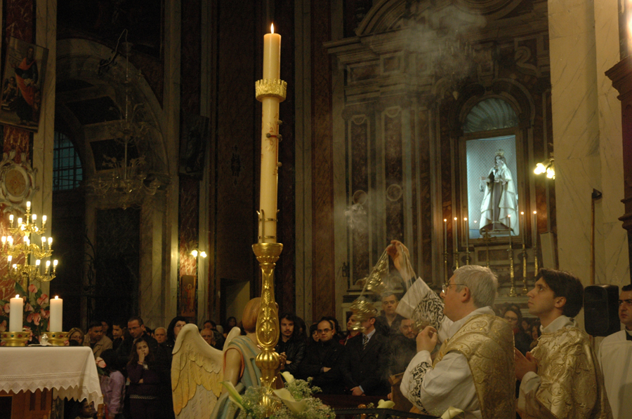 Veglia Pasquale: illuminazione della chiesa, intronizzazione del Cero pasquale. Subito dopo c'č il canto dell'Exultet