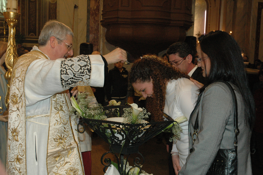 Veglia Pasquale: dopo la benedizione del Fonte, se ci sono dei batttesimi, vengono subito amministrati. Se non sono bambini piccoli, vengono anche cresimati e ricevono la Prima Comunione