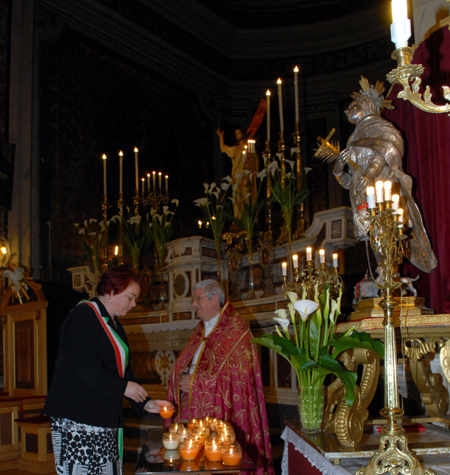 I singoli delegati rendono omaggio al Santo recando un cero acceso davanti all'immagine