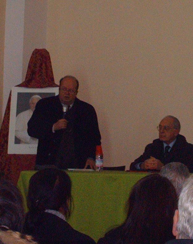 Per la ricorrenza, dunque, lunedì 22 febbraio scorso, nel salone di S. Maria della Vittoria, l’avv. Lorenzo Maggi, presidente dell’ Associazione diocesana dei Giuristi Cattolici, ha trattato l’argomento “La questione ambientale nel magistero di Benedetto XVI.” Il pubblico, di varie età, ha seguito con grande interesse la relazione ampia e documentata dell’avv. Maggi. Ha introdotto il prof. G. Cecere, ha preso la parola per un saluto il sindaco avv. Trizza, ha concluso l'arciprete-parroco ringraziando il relatore e i presenti.